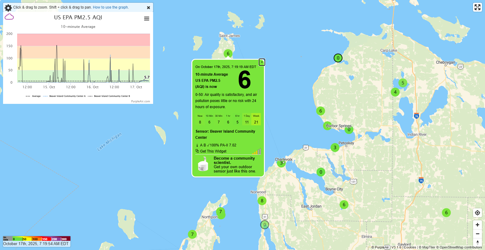 Water Temperature: No report from Little Traverse Bay. The North Lake Michigan buoy southwest of Gull is reporting 61 with three to four foot seas. Mid Lake Michigan photo at time shown. Provided by NWS |