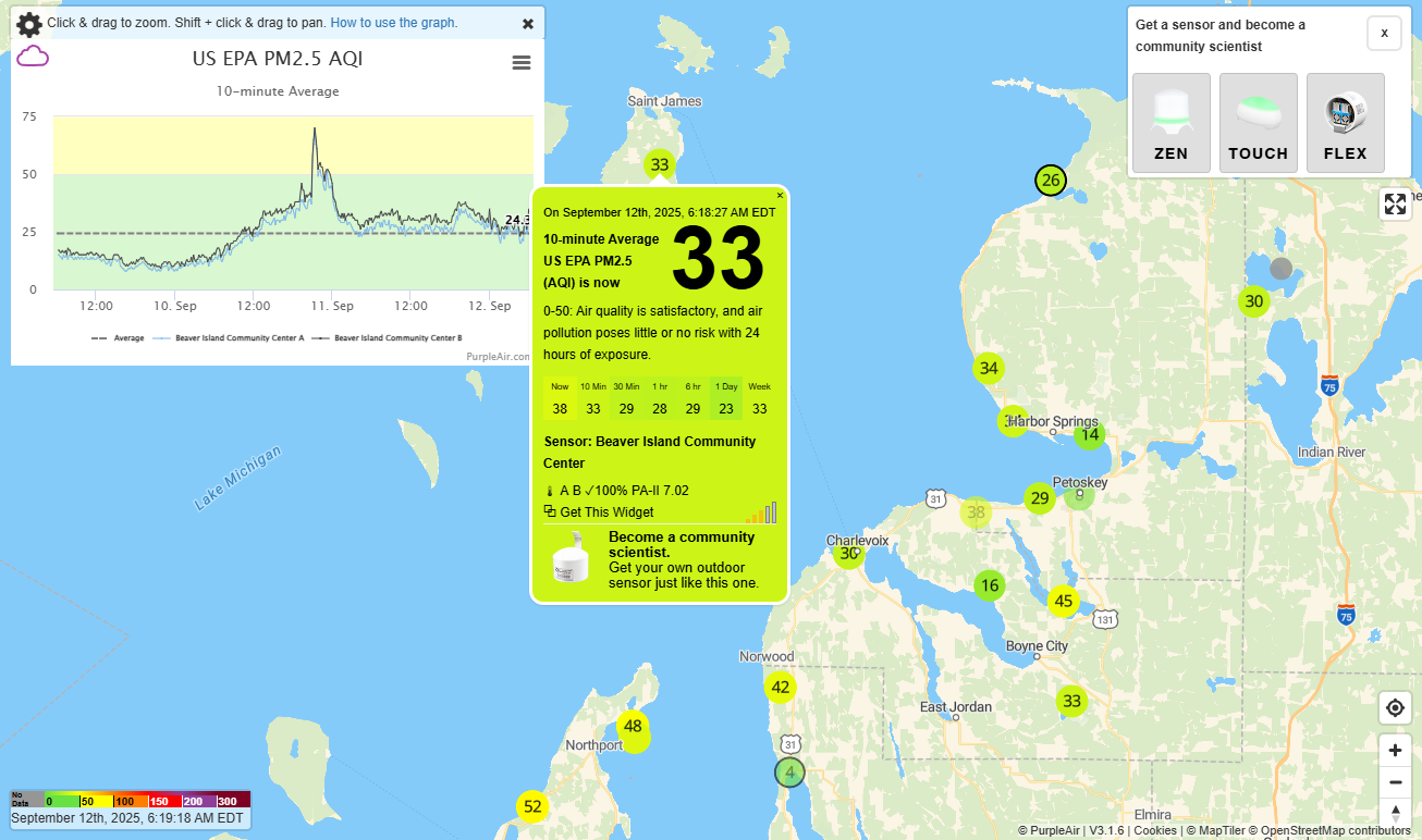Water Temperature: It’s 63 in Little Traverse Bay. The North Lake Michigan buoy southwest of Gull is reporting 61 with almost flat seas.