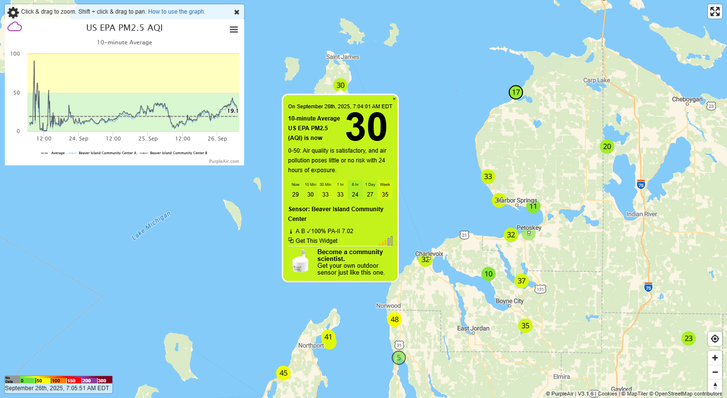 Water Temperature: It’s 63 in Little Traverse Bay. The North Lake Michigan buoy southwest of Gull is reporting 64 with two-foot seas.