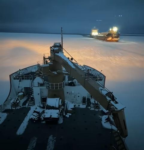 The bone chilling cold is building ice out on the lake. And that trapped the lake freighter Algoma Intrepid Saturday afternoon off Garden Island. The Coast Guard cutter Mackinac came to her rescue later in the day. The operation was one of many conducted over the last week of cold temps as the freighters work to get home for the end of the season after the closure of the Soo Locks, or in some cases continue work on the lower lakes as the Coast Guard works to keep those shipping channels open.