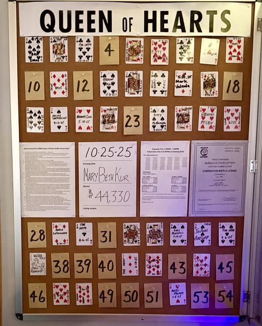New produce coolers at the market. Image from McDonough’s Market And speaking of markets, Maplewood Farm has a self-serve table for acorn squash and eggs. It’s outside the pro shop at the golf course. Our sister island is dealing with heavy seas this morning…bad enough to shut down ferry service. Reports are of winds gusting to 40 mph. The ticket drawn tonight was Mary Beth Kur she picked envelope #5 and found the Jack of Hearts. The Queen is still hiding for next week’s raffle. Mary Beth took home a $250 consolation prize. The pot now stands at $44,330.