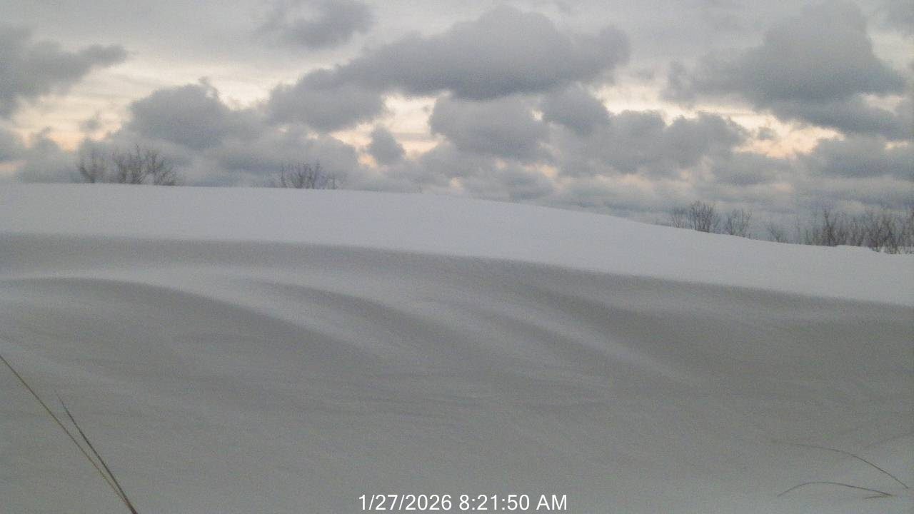 Today’s featured image: Clouds soar above a big drift captured by the Greenes Bay Webcam. Image from Greenes Bay Webcam |