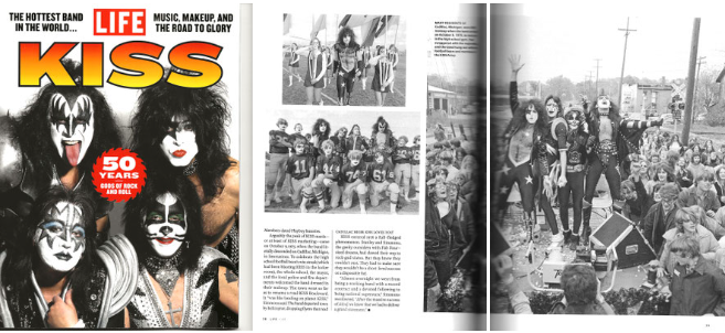 On this date in 1975, the town of Cadillac, Michigan, was kissed by rock ’n’ roll. The band KISS came to celebrate the high school football team that had turned its season around the year before—going from early losses to seven straight wins after blasting KISS in the locker room. For two wild days, the band joined the homecoming parade, played the dance, and left the Class of ’75—and the whole town—with a legend that still rocks today. Also on this date in 1985 Palestinian Liberation Front terrorists hijack he Italian cruise liner ‘Achille Lauro‘ and murder a wheelchair-bound American tourist, Leon Klinghoffer. Then, on this date in 2023, another group of Palestinian terrorists invade Israel killing almost 1,200 people and kidnapping about 250 many of whom remain in captivity. LIFE published a special KISS edition in April 2023. Cadillac is featured on pages 38-39. Image from neffcadillackiss.com |