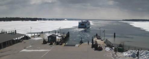 Today’s Featured Image: The Emerald Isle heads out yesterday for its first crossing of 2026 to be ready for round-trips starting today. Photo from WVBI Paradise Bay Webcam at the BIC Center |